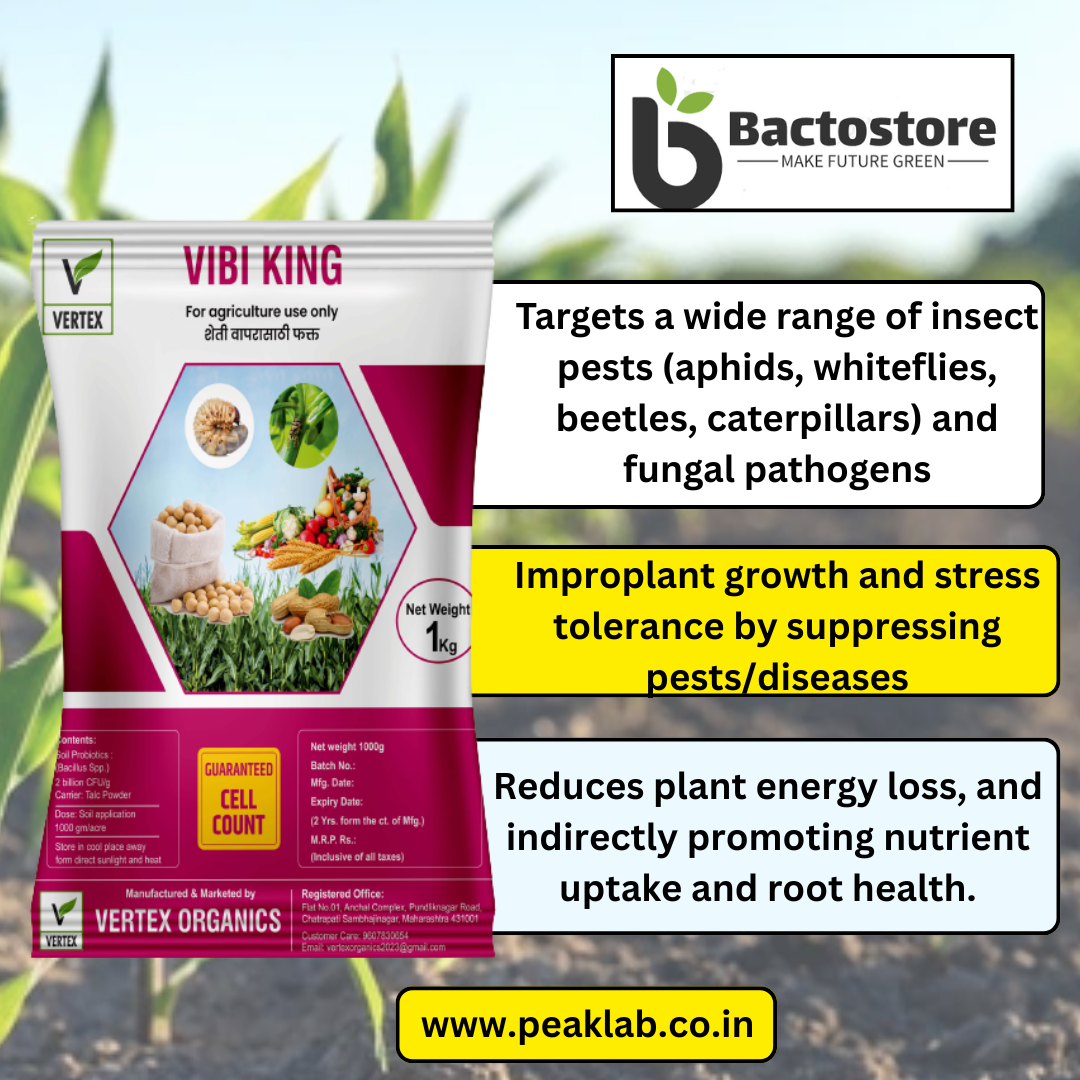 • VIBIKING ಎಂಬುದು ಪ್ರಪಂಚದಾದ್ಯಂತ ಮಣ್ಣಿನಲ್ಲಿ ನೈಸರ್ಗಿಕವಾಗಿ ಕಂಡುಬರುವ 3 ಜೈವಿಕ ಕೀಟನಾಶಕಗಳಾದ ವರ್ಟಿಸಿಲಿಯಮ್ ಲೆಕಾನಿ + ಬ್ಯೂವೇರಿಯಾ ಬಾಸ್ಸಿಯಾನಾ + ಮೆಟಾರ್ಜಿಯಂ ಅನಿಸೊಪ್ಲಿಯಾಗಳ ಹೊಸ ವಿಶಿಷ್ಟ ಸಂಯೋಜನೆಯಾಗಿದೆ - ಈ ಸಂಯೋಜನೆಯು ಅತ್ಯುತ್ತಮ ಜೈವಿಕ ಕೀಟನಾಶಕ ನಿಯಂತ್ರಣವನ್ನು ನೀಡುತ್ತದೆ.