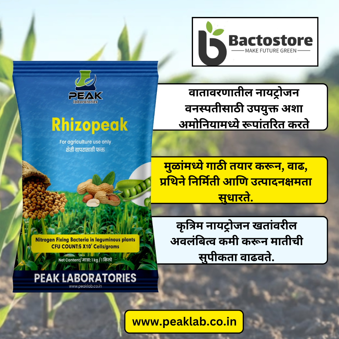 •    रायझोपीक हे नायट्रोजन निश्चित करणारे जैव खत आहे. सर्व कडधान्य पिकांसाठी उपयुक्त (हरभरा, वाटाणा, उडीद, मसूर, सोयाबीन, शेंगदाणे, बरसीम इ.) रायझोपीक स्वतंत्रपणे नायट्रोजन निश्चित करू शकत नसल्यामुळे, ते मुळांशी जोडून वनस्पतींशी सहजीवन जोडते. शेंगायुक्त वनस्पती आणि नोड्यूल तयार करतात.