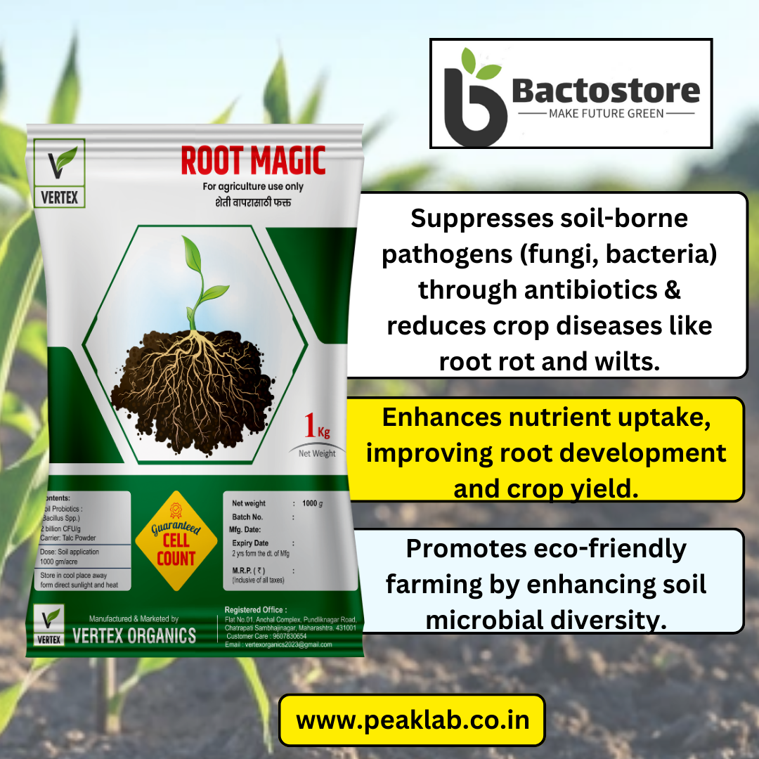 - ROOT MAGIC contains properties of Bio Fungicide and Growth Promoter.